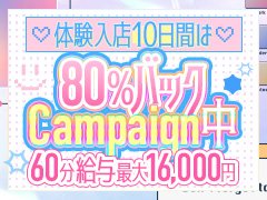 さらに!体験入店期間10日間はなんと80%バックキャンペーン開催中! 80%バックなので稼げること間違いなし✨ この期間に入店するか決めていただいて構いません。