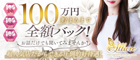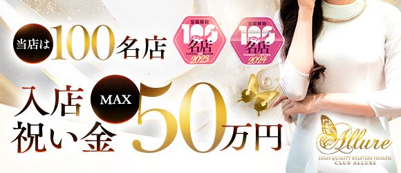 ★★最高のバック率システム・70%~90%+他店とは類をみない抜群の集客力★★福岡市内に無数にあるお店の中でも、最高クラスの高稼働率! (OPENから15年、顧客数50000名オーバーのリピート率が90%以上の圧倒的な支持率を誇ります) はじめまして福岡高級デリヘル クラブ アリュールです♪ 経験者・未経験者の方、他店と是非比べてみてください。