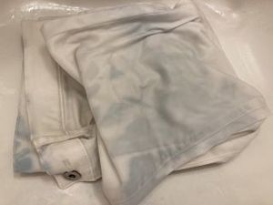 朝起きると白のパンツに紺のTシャツの色が入ってしまいました・・・( ;∀;)