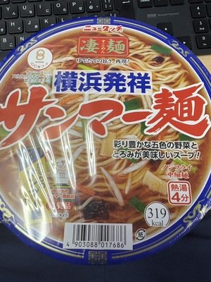 「凄麺」シリーズ:これは ゆでたての旨さを再現した ノンフライ麺がウリ。 インスタントにしては 本格的な味と食感が楽しめる ブランドとして有名です。 横浜発祥のサンマー麺 サンマー麺は もやしや野菜をとろみの あるスープでまとめた 横浜のご当地ラーメンです。 手軽にその味が楽しめるのは嬉しい。 調理時間:4分:ちょうどいいですね。 忙しい時でもサクッと作れて便利。 319kcal:カロリー 控えめなのも嬉しいポイント。 五色の野菜入り:野菜の 彩りととろみスープで 健康志向にも寄り添って いる感じがします。 パッケージを見ただけでも 「これはちょっと普通の カップラーメンとは違うな」 と期待させてくれる商品です。 特に、サンマー麺という ローカルラーメンを全国どこでも 楽しめるのはありがたい。 コンビニやスーパーで見かけたら ぜひ一度試してみたい一品ですね。 以上そってぃーでした!