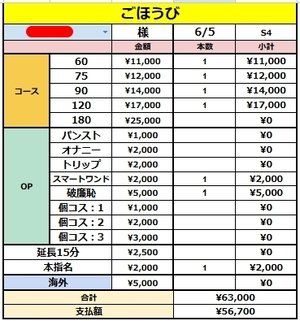 4名様接客頂いて¥56,700円です(*´ω`*)