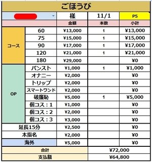 4名様接客頂いて¥64,800円です(*´ω`*)
