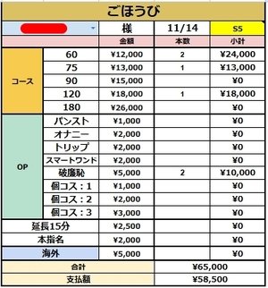 4名様接客頂いて¥58,500円です(*´ω`*)