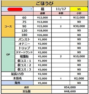 3名様接客頂いて¥48,600円です(*´ω`*)