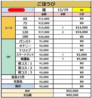 3名様接客頂いて¥49,500円です(*´ω`*)