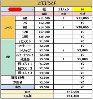 3名様接客頂いて¥41,400円です(*´ω`*)