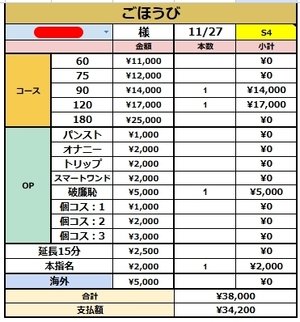 2名様接客頂いて¥34,200円です(*´ω`*)