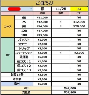 3名様接客頂いて¥37,800円です(*´ω`*)