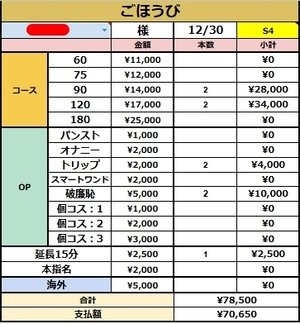 4名様接客頂いて¥70,650円です(*´ω`*)