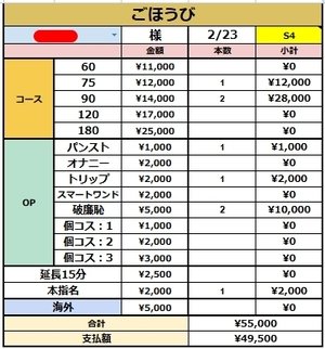 3名様接客頂いて¥49,500円です(*´ω`*)