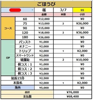 4名様接客頂いて¥68,400円です(*´ω`*)4