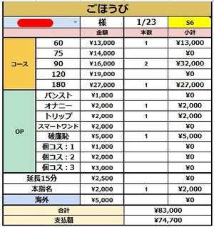 入店時の最低単価になっております!!
