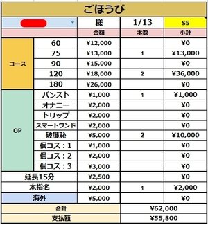 3名様接客頂いて¥55,800円です(*´ω`*)