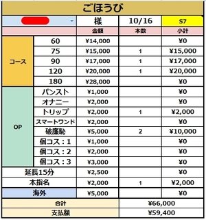 3名様接客頂いて¥59,400円です(*´ω`*)
