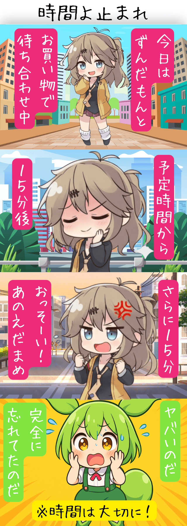 久しぶりの4コマ漫画『時間よ止まれ』 原案XX 作画ずんだもんとつむぎ