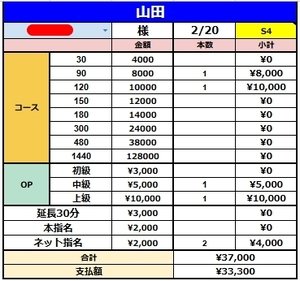2名様接客頂いて¥33,300円です(*´ω`*)