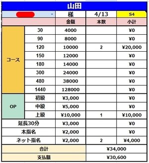 2名様接客頂いて¥30,600円です(*´ω`*)