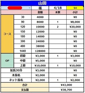 3名様接客頂いて¥38,700円です(*´ω`*)
