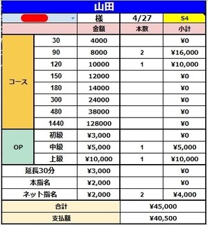 3名様接客頂いて¥40,500円です(*´ω`*)