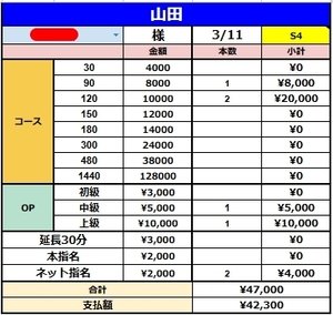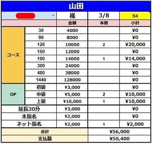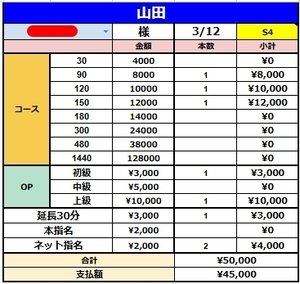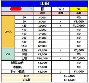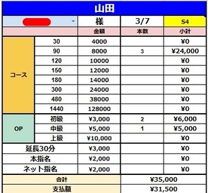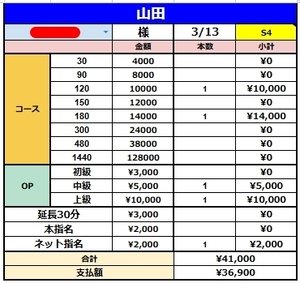 3名様接客頂いて¥37,800円です(*´ω`*)