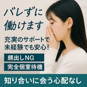 そんな不安をお持ちの方も多いと思います。実際にご応募いただく女性の9割以上が“身バレ”について心配されています。でもご安心ください。当店では実際に、バレずに安心して働かれている方がたくさんいらっしゃいます。