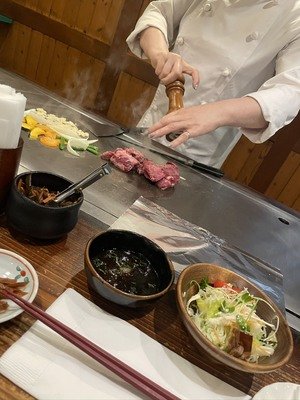 全席にある鉄板で目の前で焼いてくるのに