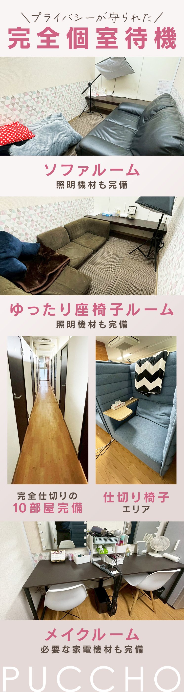 スタッフさんみんな優しくて相談しやすいです( ´ ▽ ` )困った時はアドバイスしてくれます!お客さんも優しい方が多いのでとても働きやすいです待機も個室待機で綺麗なお部屋なので環境もとてもいいです♪♪♪