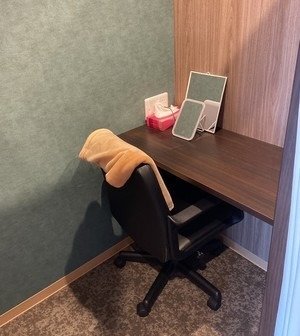 写真ではチェアタイプの個室ですが、