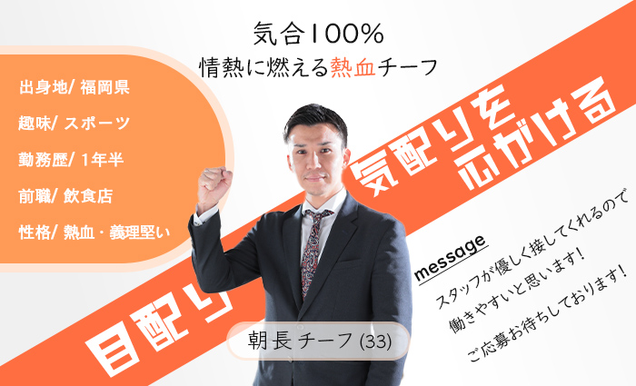 当店での採用が難しい場合でも、加盟店への採用が可能な場合もございますので、お気軽にご相談ください。
