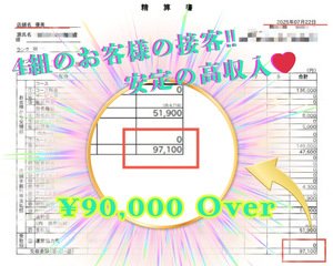 実際に働いた女の子の㊙精算書をご紹介✨ 【 7月某日 M さん 収入!!⇒ 大台の約10万円 = ¥97,100 】