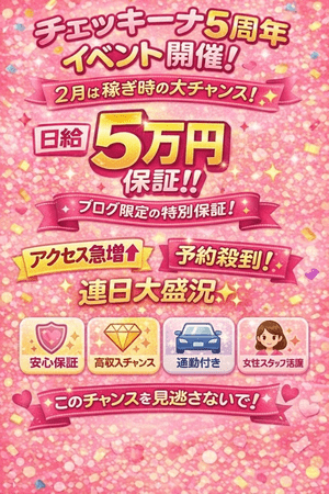 チェッキーナ5周年を記念して、働いてくれる女の子に特別保証をご用意しました🎉