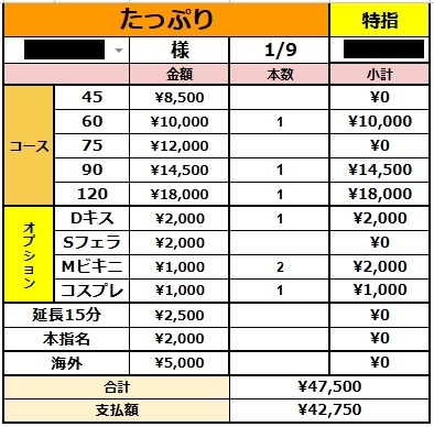 昨日1月9日(金)に出勤した新人女性の給与は・・・