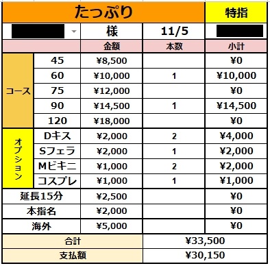 昨日11月5日(水)に出勤した新人女性の給与は・・・