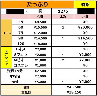 昨日12月5日(金)に出勤した新人女性の給与は・・・