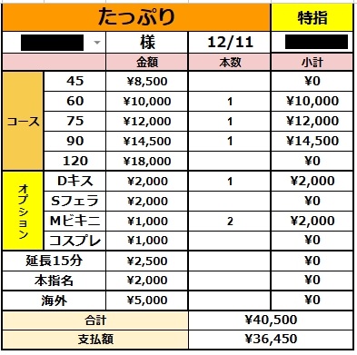 昨日12月11日(木)に出勤した新人女性の給与は・・・