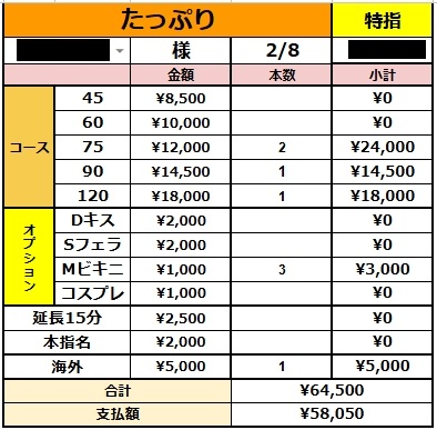 昨日2月8日(日)に出勤した新人女性の給与は・・・