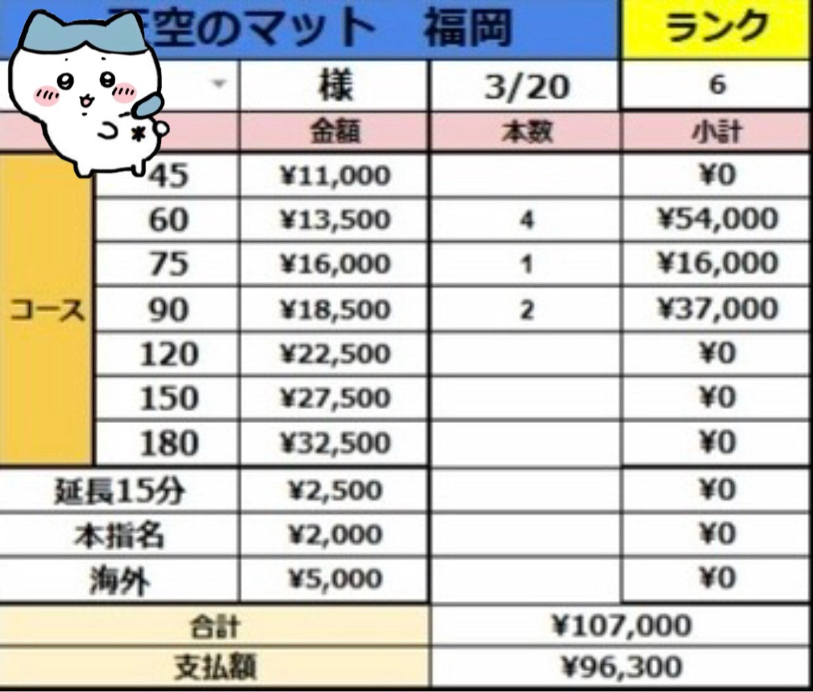 天空のマットでは女性の身体にリスクとなるサービスはオプションを含め一切ありません。
