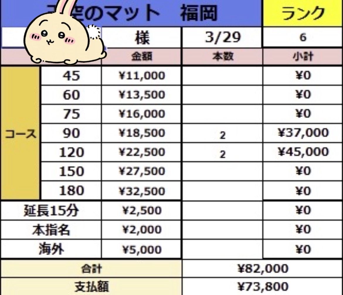 こんばんは🌛 天空のマット はがわ です😸💖 昨日、3月29日(日)の 最高給与は、、¥82,000 でした〜( ु ›ω‹ ) ु♡ 日曜ということもあり、 早い時間からたくさんのお客様に ご来店いただきました👶🎶🌟 圧倒的な集客力なので、 お客様の数に対して 女性が足りてない…そんな日曜日です( i ꒳ i ) 摘発の心配や、過度なサービスが負担で 在籍を変えたい方や 閑散期で出稼ぎ先を探してる方 どんな女性も募集中です⎛˶'ᵕ'˶ ⎞💕 お話だけでもご気軽にどうぞ😻🎀