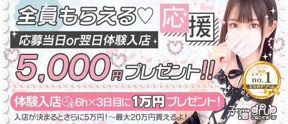 | A | 大歓迎ですよ♪ 【子猫GROUP】ではいつでも新人さんの受け入れ準備は完璧です💕 【子猫GROUP】はソフトサービスのお店なので未経験の女の子🔰でも説明だけで実技講習などは一切ありません💕 なので、応募その日に体験入店は望むところなのです💕 むしろ10,000名の会員さまもサプライズに大喜びですぐに反応してお電話をくれるんですよ💕 |