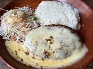 ふっくらジューシーなハンバーグに、たっぷりのチーズ。