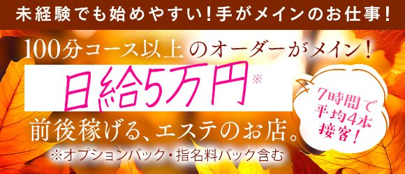 未経験でも始めやすい!手がメインのお仕事!100分コース以上のオーダーがメイン!1日で5万円以上稼げるエステ店です!