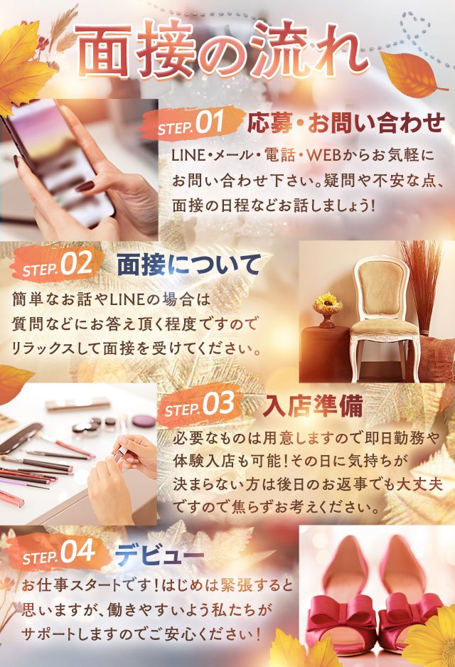 初めて風俗のお仕事をされる方も、他店からの移籍を考えている方も、遠慮なくお問い合わせください。
