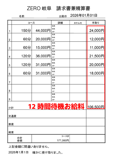 12時間待機のお給料です