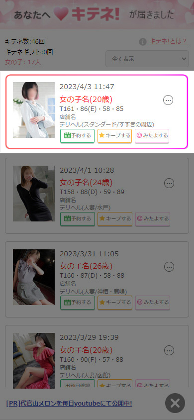 ◆まずは、ガールズヘブンで操作を行います。