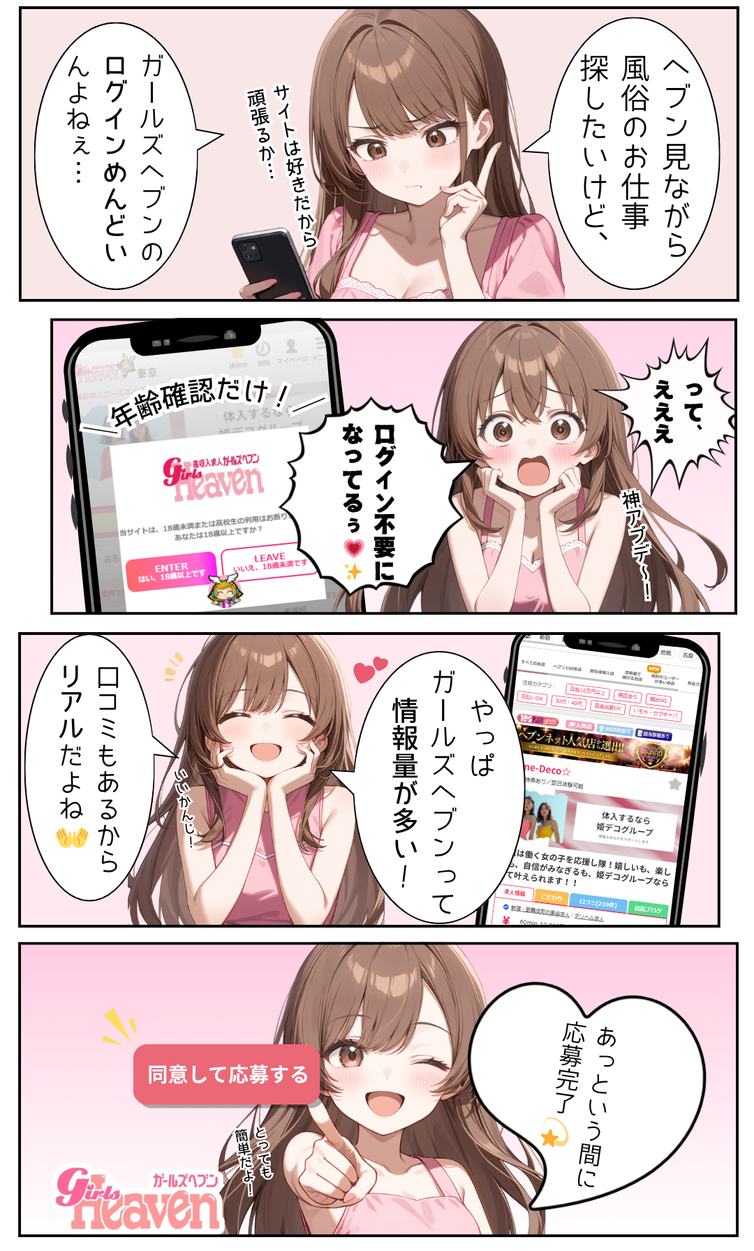 【朗報】ガールズヘブンがログイン不要に!簡単&便利な風俗求人サイトへ進化☆
