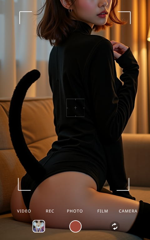 撮り方:椅子やベッドにお尻を突き出して座り、振り返る。