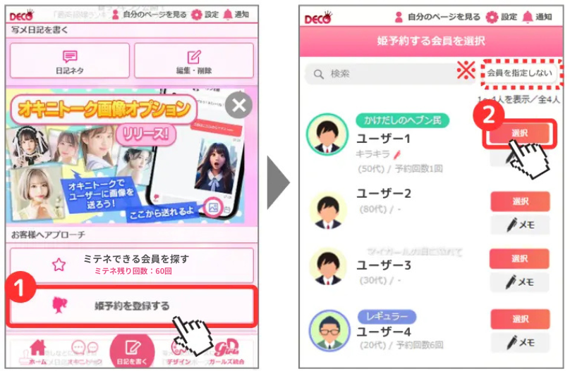 今までもオキニトーク内のペンマーク🖋から登録できましたが、新しく姫予約画面からも登録できるようになります!