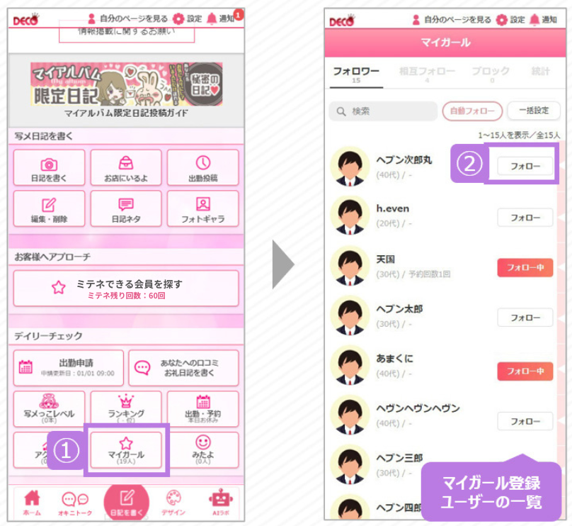 1.ユーザーが「マイガール登録」してくれる