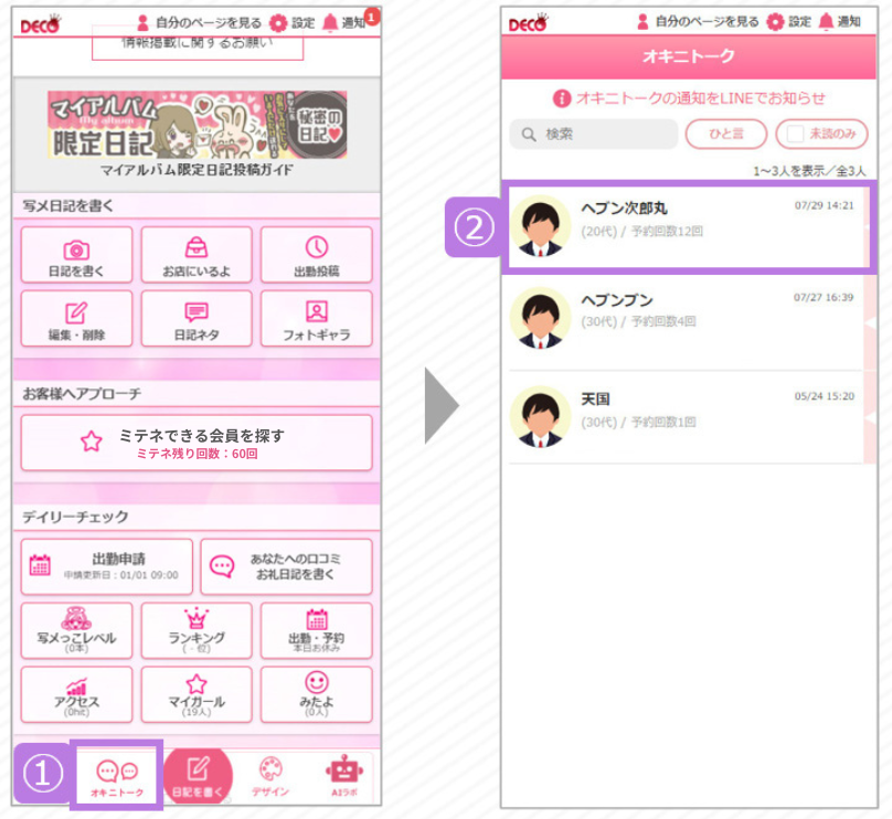 オキニトークは、姫デコ上で女の子とユーザーがやり取りできる 専用メッセージ機能 です。