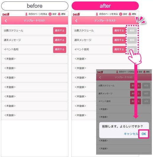 テンプレートリストの右側にある[削除]ボタンを押すと、確認画面が表示されます。